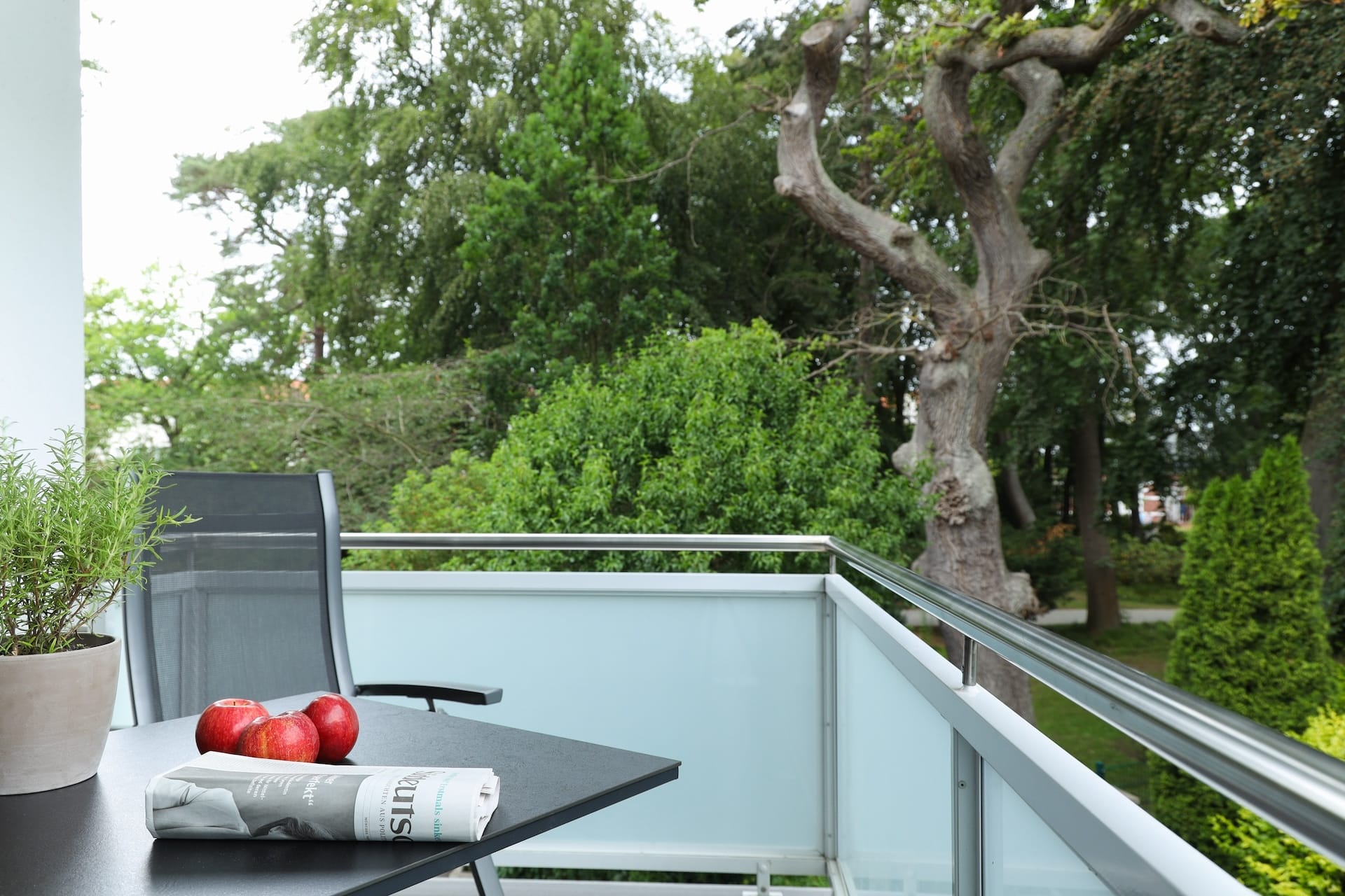 Das Studio mit Balkon befindet sich im Erdgeschoss und verfügt über geräumige ca. 35 m², über einen kombinierten Schlaf-/Wohnraum der zum Wohlfühlen einlädt hinzu kommt eine ausgestattete offene Küchenzeile und ein Badezimmer mit Dusche. Die Küchenzeile verfügt über einen Kühlschrank, Toaster, Backofen und Ceran-Herdplatte sowie verfügt diese auch über Geschirr, Kochutensilien und Besteck. Für den morgendlichen Kaffee und Tee ist auf jeden Fall gesorgt, Sie können sich dieses mit der vorhandenen Filterkaffeemaschine sowie eine Nespresso Kaffeemaschine und dem Wasserkocher zubereiten. Der gemütliche Schlaf-/Wohnraum ist mit einem großen Flachbildfernseher mit Kabel-TV-Empfang und einem Radio ausgestattet, das WLAN steht Ihnen kostenlos zur Verfügung. Zu Ihrer Wohnung gehört auch ein Balkon, dieser mit Balkonmöbel ausgestattet ist, wo Sie den Tag genießen können, aber auch Abends ungestört den Tag ausklingen lassen können.