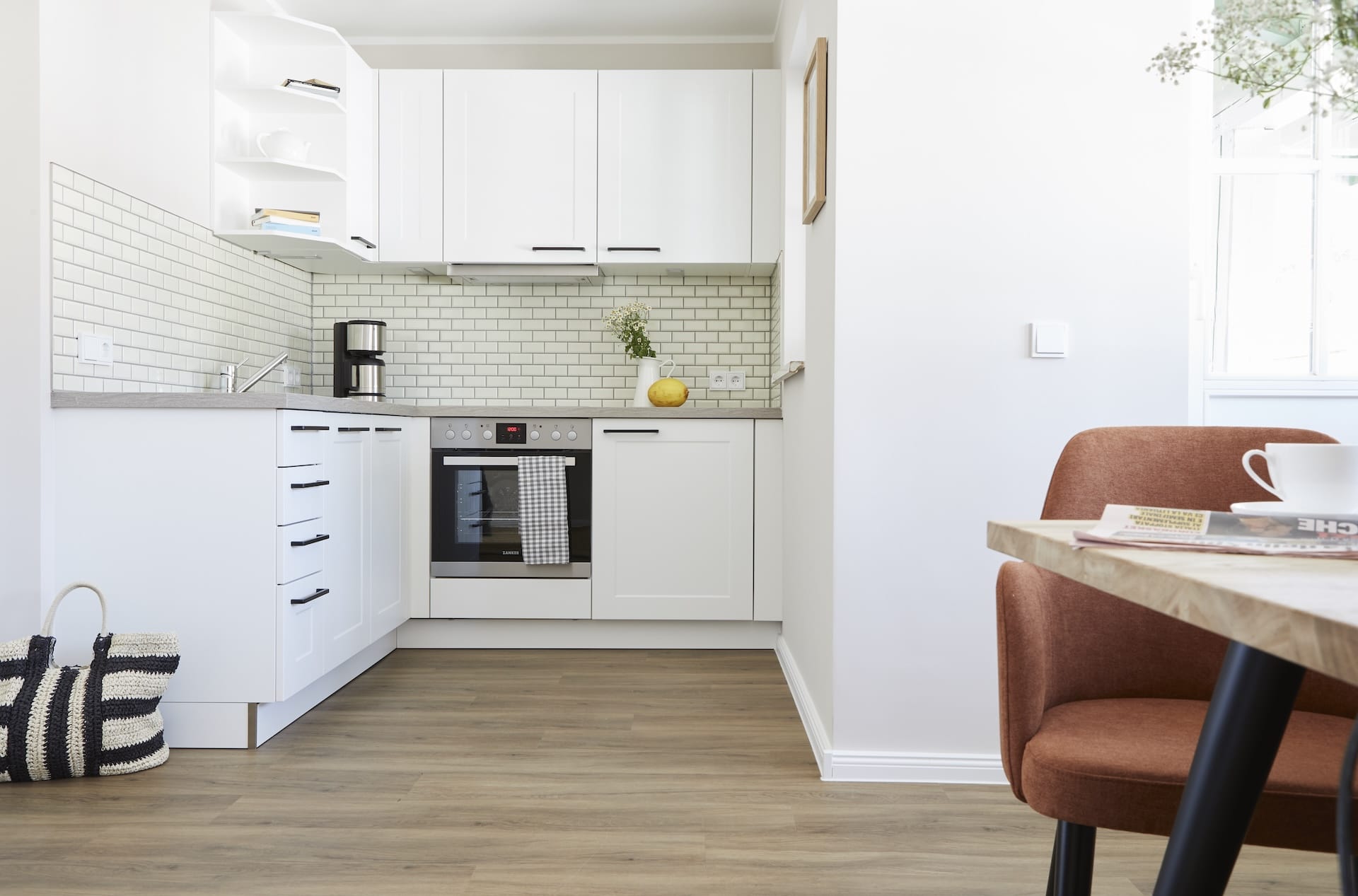 Unsere Ferienwohnung Suite mit Terrasse befindet sich im Anbau des historischen Haupthauses unserer kleinen Ferienanlage und hat eine Fläche von ca. 53 m². Die Wohnung befindet sich im Erdgeschoss des Anbaus und verfügt über eine eigene Terrasse die zum Garten ausgerichtet ist. Die Wohnung verfügt über einen großen Wohnraum mit integrierter, moderner Küchenzeile. Es steht ihnen ein separates Schlafzimmer zum Verfügung. Die Küchenzeile ist mit einem Geschirrspüler, Kühlschrank und Herdplatten ausgerüstet. Geschirr und Besteck sind ausreichend vorhanden. Eine Nespresso-Kaffeemaschine sowie eine Kaffeefiltermaschine und ein Toaster stehen Ihnen zur Verfügung. Das Wohnzimmer ist mit einem modernen Flachbildschirm und HD-TV-Satellitenanlage ausgestattet. WLAN steht kostenlos zur Verfügung.